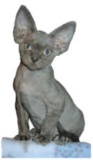 breed are the large 'pixie' like ears, the short wavy and velvet like coat, short crinkly whiskers, and for some, the wrinkly
